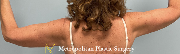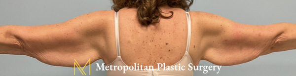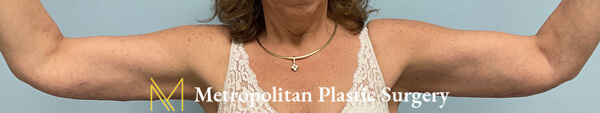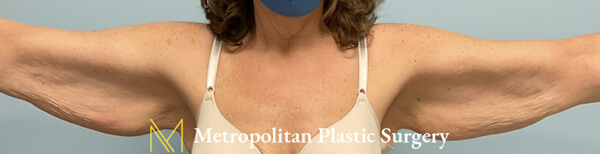 60-year-old female underwent liposuction and arm lift (brachioplasty); The photos on the right are10 months post-op
