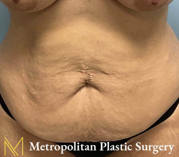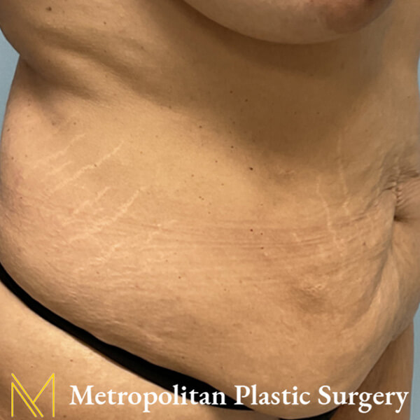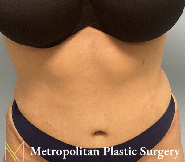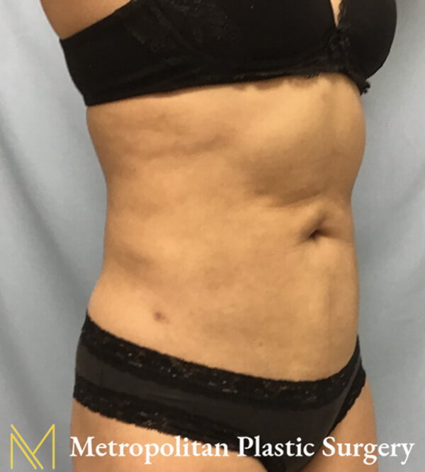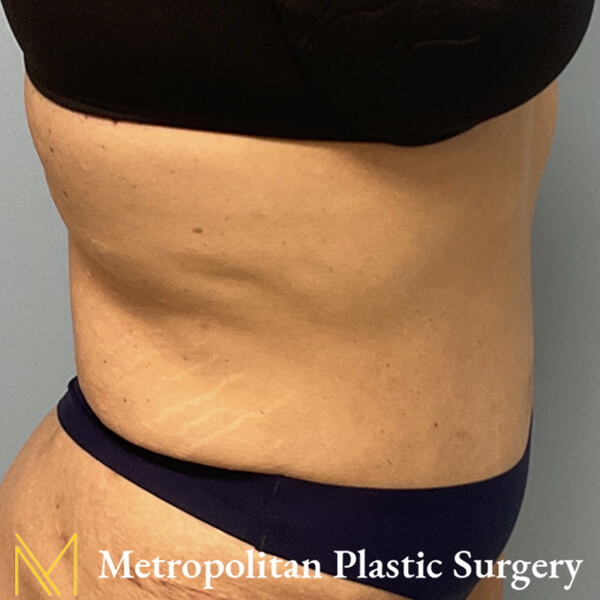 44-year-old female underwent an abdominoplasty(tummy tuck); The photos on the right are 5 months post-op