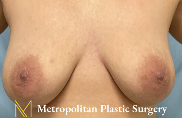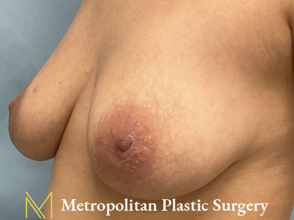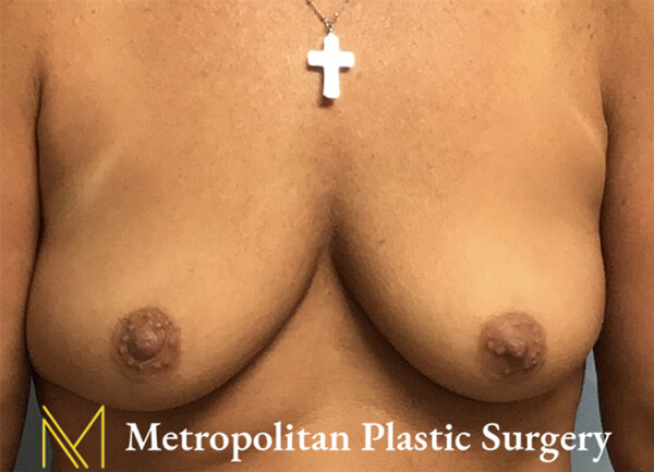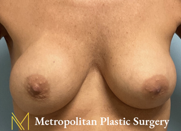50-year-old female underwent a breast augmentation; The photos on the right are 2 years post-op