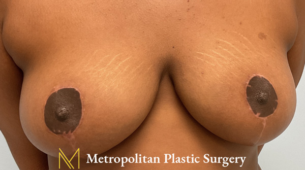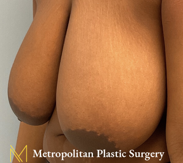 24-year-old female with a bra size of 38G underwent a breast reduction; The photos on the right are 2 months post-op