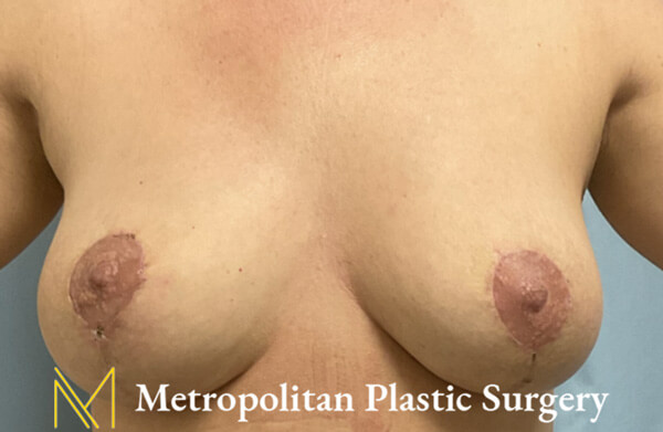 38-year-old female underwent an inverted t/ anchor incision breast lift; The photos on the right are 1 month post-op