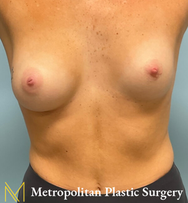 23 year old female underwent a breast augmentation; The photos on the right are 5 months post-op